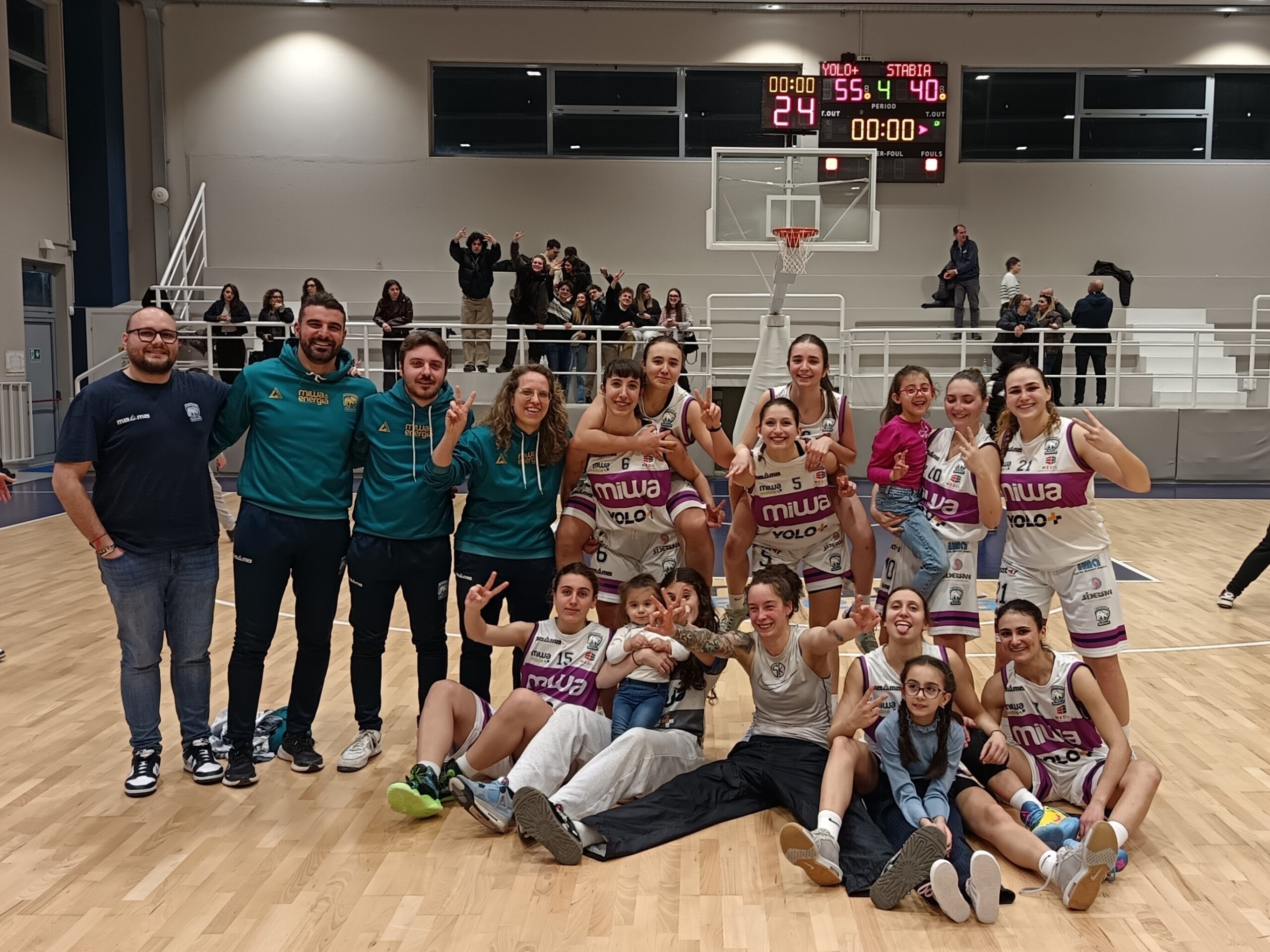Nell’ultimo periodo, la squadra di coach Pasquariello gestisce alla grande il risultato, mantenendo sempre un distacco superiore alla doppia cifra. Sulla sirena finale, dunque, il tabellone recita il risultato di 55-40, che sancisce la seconda vittoria consecutiva per una fantastica YOLO+.